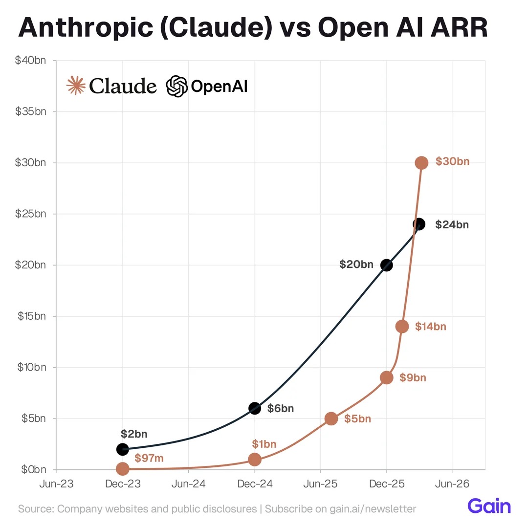 Comparison of ARR Growth: Claude vs OpenAI (2023–2026)